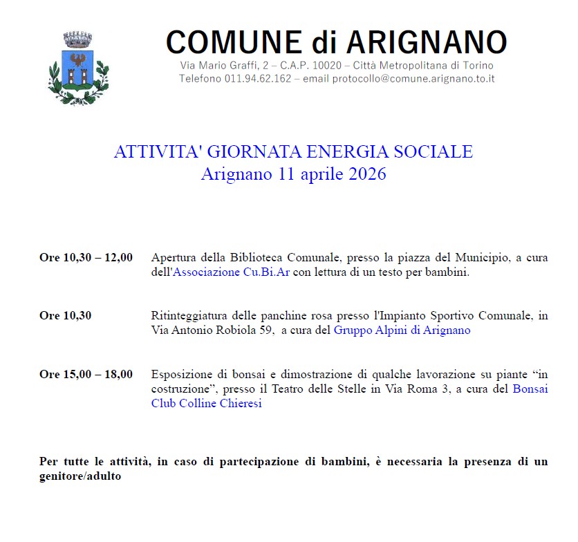 Sabato 11 aprile si svolgerà sul territorio la prima Giornata dell'Energia Sociale.